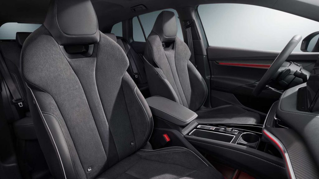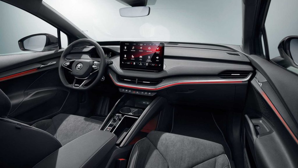 Avtomobilə baxarkən orijinal “Enyaq”a görə öndən 15 mm, arxadan 10 mm endirilən asqıları, iki yeni 20 və 21 düymlük fərqli təkər modellərini, qara gövdə detallarını, idman oturacaqlarını, idman sükanını və karbon effektli daxili hissələri vurğulamaq olar.